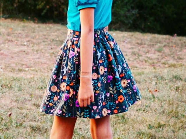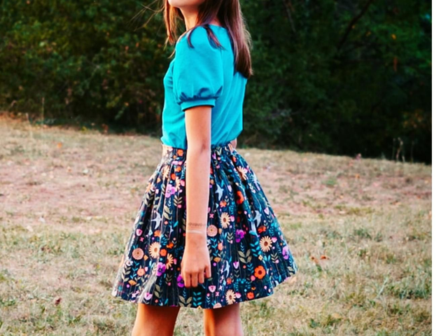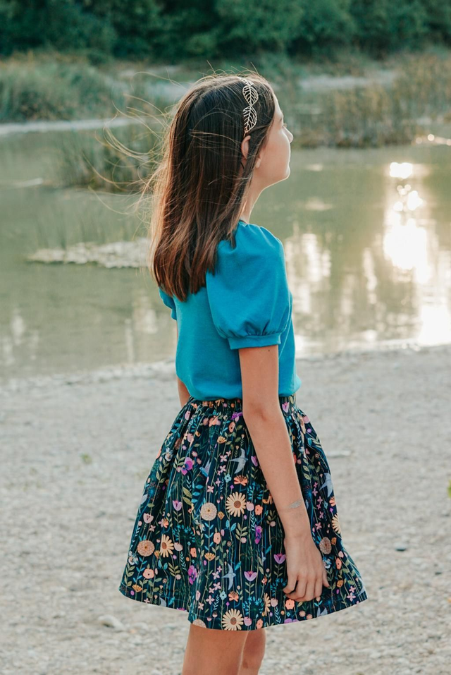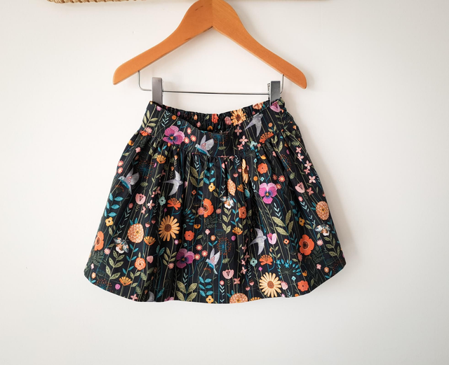 Jupe en coton imprimé oiseaux et fleurs.